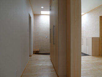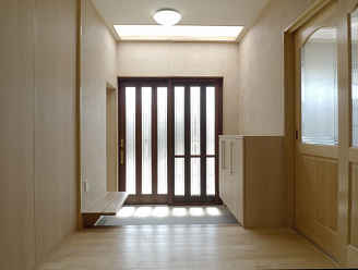 奥行きのある玄関なので、トップライトを設けて暗くならないように配慮しました。